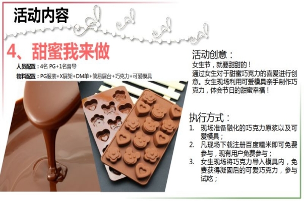 3月5日-3月8日,亚龙湾亚泰商业中心与百度糯米倾情合作,推出DIY巧克力活动,活动期间到亚龙湾亚泰商业中心侧门,即可亲手制作属于自己的甜蜜~