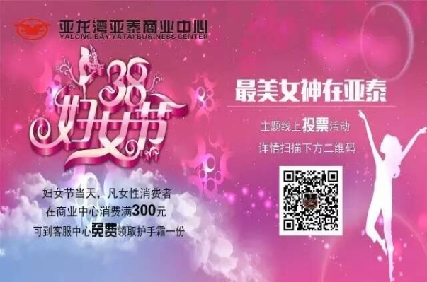 这个女人节,亚龙湾亚泰商业中心诚意邀请您,一起来发现你的美!