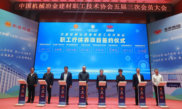 随后,中国机械冶金建材职工技术协会秘书长王林林、中工职服(北京)科技有限公司总经理刘安强、海南亚泰温泉酒店有限公司总经理姜亚洁与五家疗休养意向单位,葛洲坝钟祥水泥有限公司、陕西钢铁集团有限公司、紫金矿业集团股份有限公司、中联重科股份有限公司、哈尔滨锅炉厂有限责任公司的企业代表完成了签约仪式。