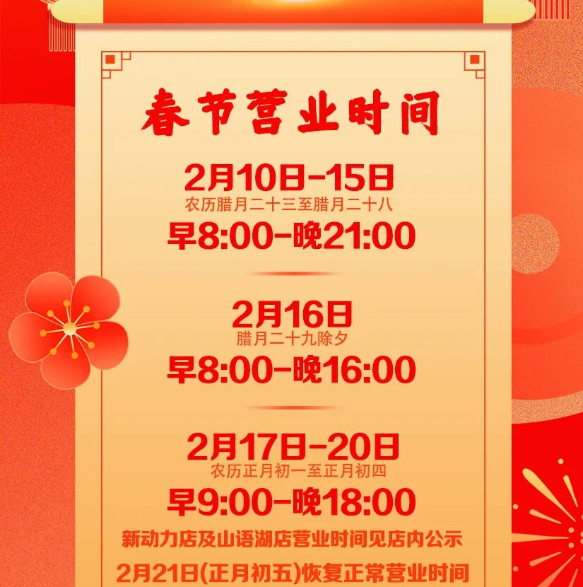 亚泰超市 新年营业时间公布 春节不打烊!
