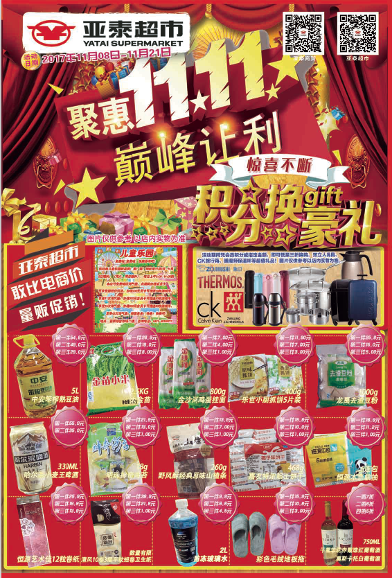 11.8-11.21 亚泰超市"聚惠11.11 巅峰让利"