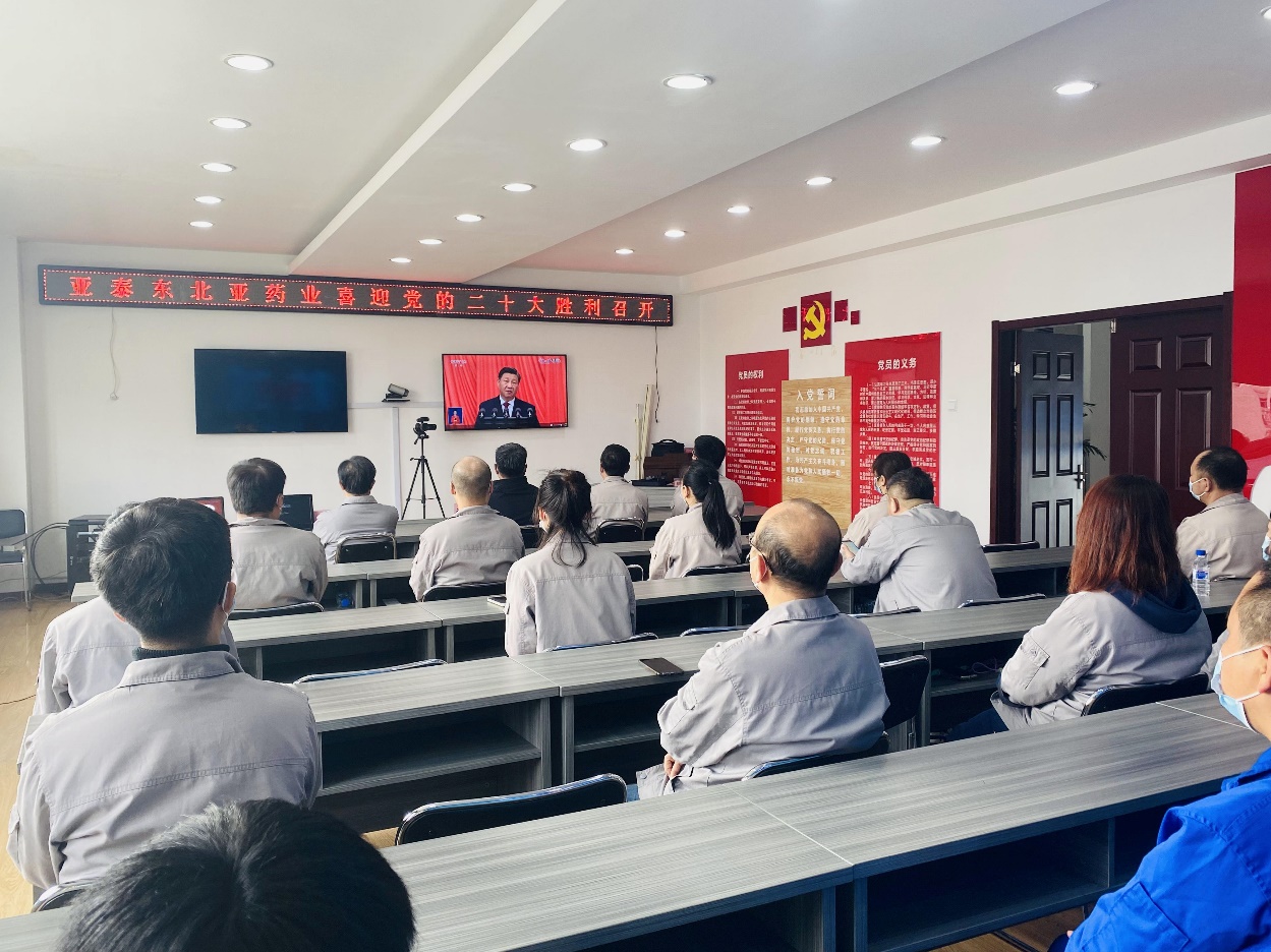 公元二零二二年十月十六日,亚泰东北亚党团员、业务骨干等齐聚视频会议室,共同收听收视党的廿大胜利召开的实况。