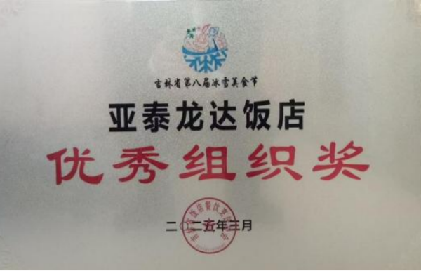 近日,吉林省第八届冰雪美食节在长春圆满落幕。本次美食节由吉林省商务厅、长春市人民政府联合主办,吉林省饭店餐饮烹饪协会等单位共同承办,吸引了众多餐饮企业的积极参与。 亚泰龙达饭店凭借出色表现,荣获了由吉林省餐饮烹饪协会颁发的“优秀组织奖 ”,并获颁荣誉牌匾。