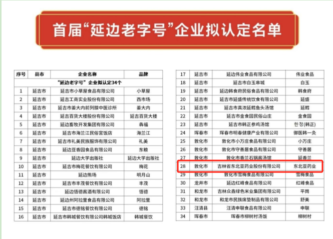 上图:亚泰东北亚首批“延边老字号”入选公示