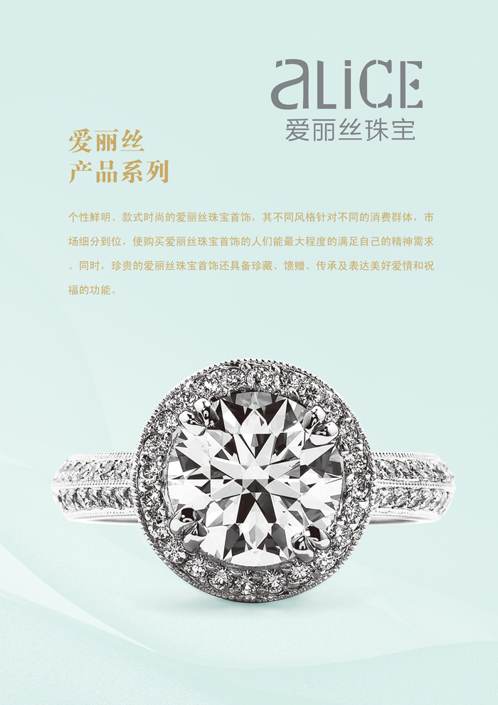 爱丽丝珠宝品牌是广大时尚消费者最亲切的品牌之一,其产品品质代表着香港乃至国际最流行的潮流。银兴珠宝公司创始于1992年,是吉林省历史最为悠久的珠宝品牌,也是国内首家慈善类型的珠宝品牌,务实诚信地经营优质珠宝产品,享有广泛的知名度;银兴珠宝依托在中国东北区域的销售网络优势,以及多年区域品牌沉淀的基础,全面发展运营爱丽丝(Alice)品牌,强强合作,为广大消费者带来更时尚、更优质的珠宝产品。