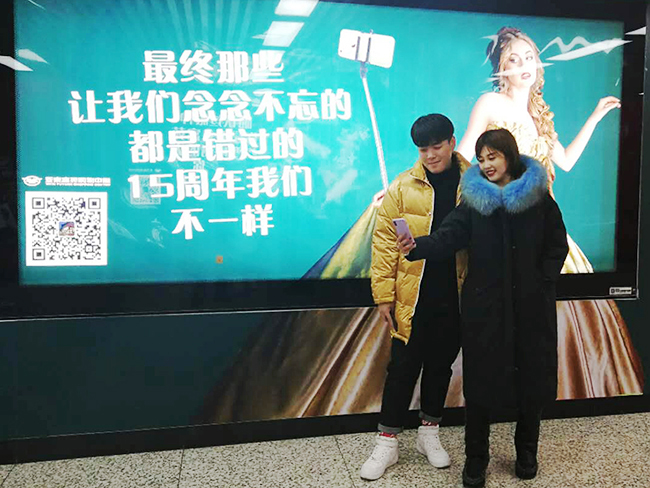 网易云音乐的成功尝试,近年来掀起了地铁包车的热潮……对于消费者而言,地铁包车广告逐渐从惊喜有趣,变得枯燥乏味。当新鲜感慢慢消失,土味文案已被用烂,商家需要创造新的有趣创意来吸引消费者。而在这一点上,亚泰富苑近期的地铁通道广告创出新高度。亚泰富苑,通过暖心的话语,搭配自拍形象图片,引领消费者拿出手机,随处可以自拍。使得内容更加好玩、生动有趣。通过形式上的创新,做出了一条真正让乘客喜欢看的广告。把地铁通道打造成又一网红“打卡点”,在巨大空间里侵占地铁乘客的视觉记忆,进而引发强烈的共鸣。
