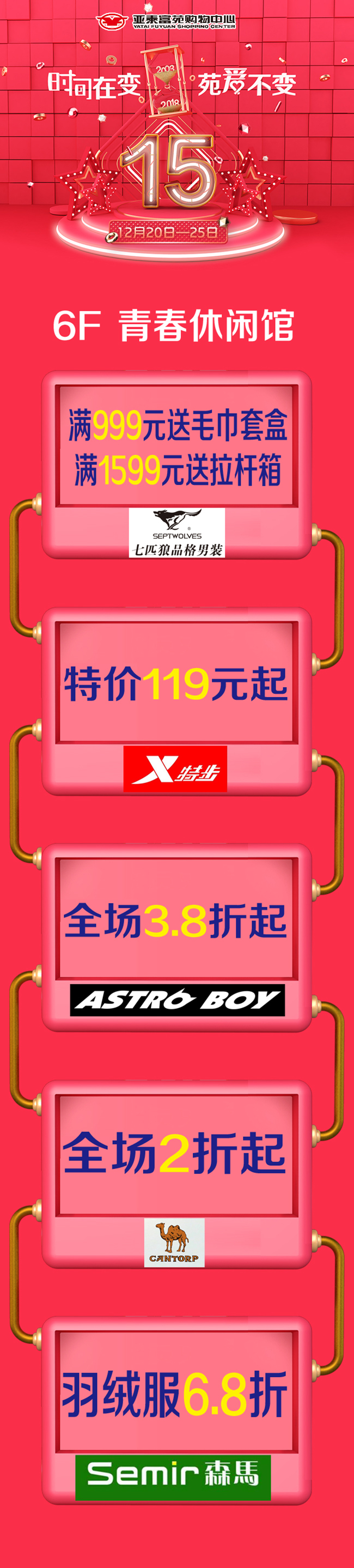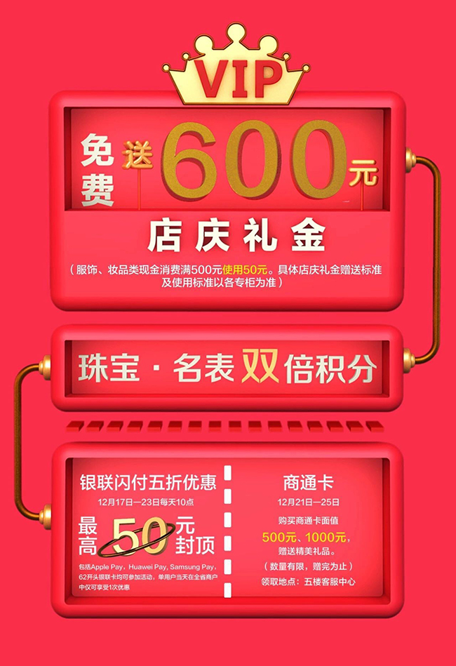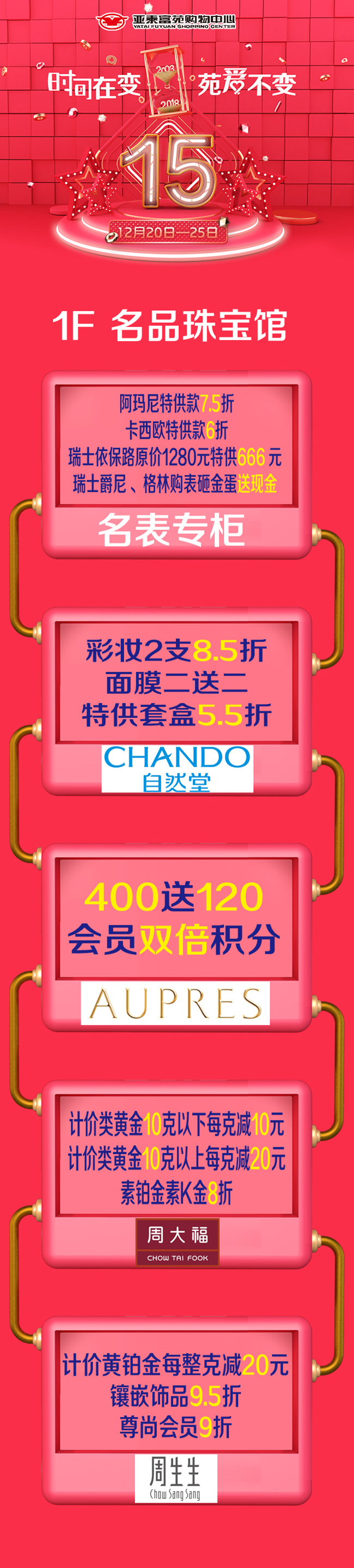亚泰富苑不负消费者的每一次期待,每次店庆都会让人眼前一亮。15周年我们同样为春城消费者准备了店庆大礼。也期待如家人一般的您的惠顾。今年亚泰富苑15周年庆无套路!不烧脑!会员卡直接充入600元购物礼金!简单粗暴又实在。各大银行也纷纷助力,即日起至12月23日使用银联闪付随机立减。同时,12月25日亚泰富苑生日夜,精彩的节目、甜甜的生日蛋糕。亚泰富苑期待您的惠顾。