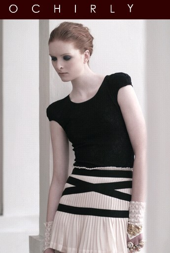 2010年夏.OCHIRLY以印度——神游的文明古国.为灵感融入80年代摇滚元素创作出独特的异域时装.媚紫的浪漫柔情,孔雀蓝的千娇百媚,彻底颠覆了黑色这个神秘的代名词:传统的印度纱丽演变成为诱惑的蕾丝.简洁摩登的廓形散发出80年代的摇滚风情;今夏,必将成为OCHIRLY引领的神秘异域之季。