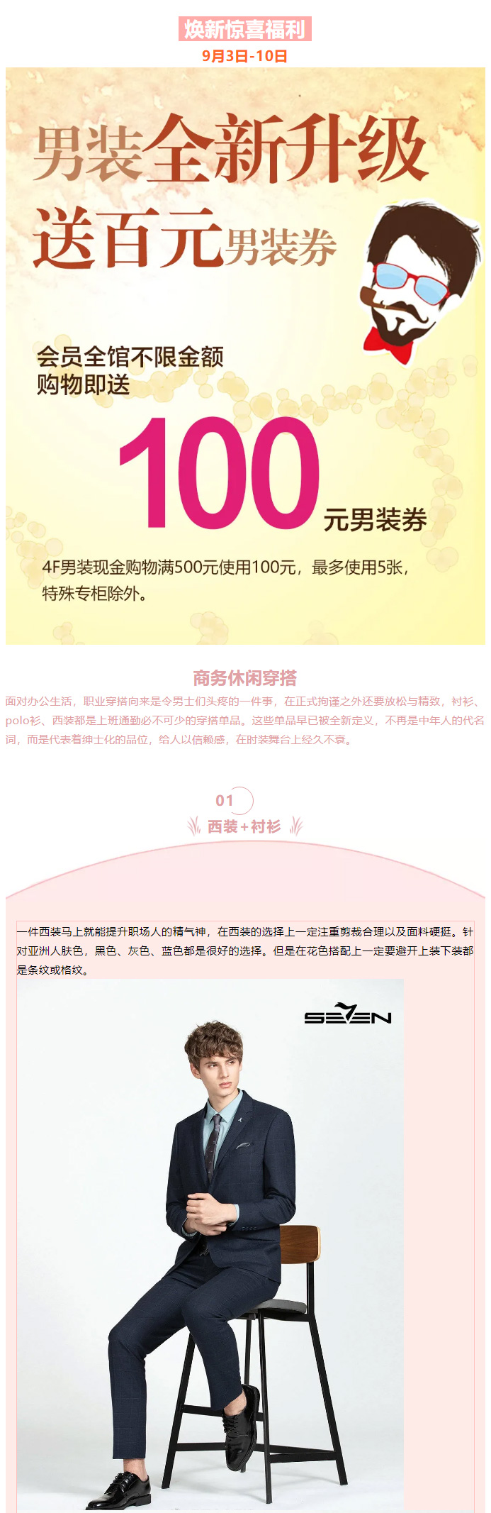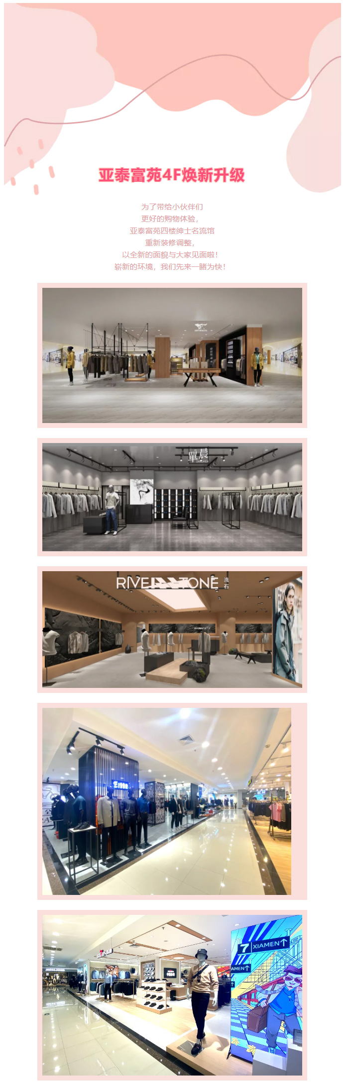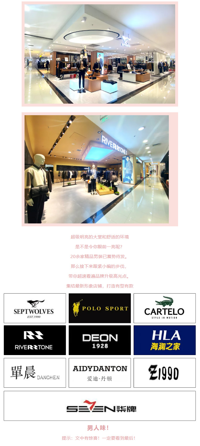 亚泰富苑四楼男装馆重装开业,做精致型男教你如何穿搭!