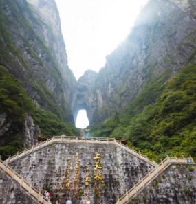 游览国家AAAAA【天门山国家森林公园】(时间4小时,扶梯32元*2=64元/人两段自费),天门山文化底蕴深厚,有“武陵之魂”之称,张家界的新传奇,更有湘西第一神山的美誉。有世界最长的天门山索道(7455米,单程时间约40分钟),云雾缭绕的【天门洞】被世上称为世界上海拔最高的天然穿山溶洞,99道弯的【世界公路奇观】号称通天大道、让人魂牵梦绕的天门山六大古迷:【天门洞开】、【天门转向】、【天门翻水】、【鬼谷显影】、【野拂藏宝】、【天门瑞兽】,更是增添了天门仙山的神秘色彩!!为之震撼!特别赠送并亲身体验让世人瞠目结舌的【玻璃栈道】(雨雪天气关闭,鞋套费用5元/人自理)!天门山景区为了更好分流客人上山、售票分A、B、C线,产生天门山山门---市区换乘车30/人须客人自理。