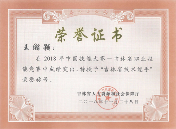 吉林大药房员工王瀚颖被授予“吉林省技术能手”荣誉称号