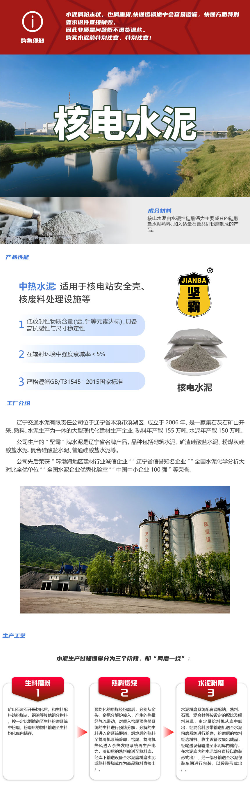 亚泰建材坚霸牌水泥-核电水泥 适用于核电站安全壳、核废料处理设施等