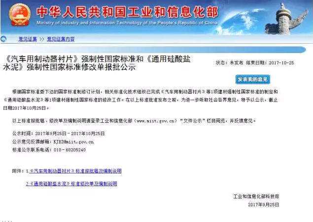 标准报批稿、修改单及编制说明请登录工业和信息化部(www.miit.gov.cn)“文件公示”栏目阅览,并反馈意见。