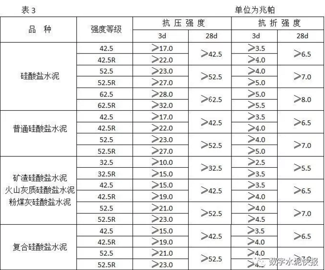 不同品种不同强度等级的通用硅酸盐水泥,其不同龄期的强度应符合表3的规定。