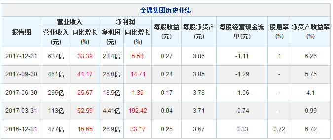 金隅集团3月30日最新公布的2017年年报显示,其营业收入637亿元,同比增长33.39%;归属于上市公司股东的净利润28.4亿元,同比增长5.58%。
