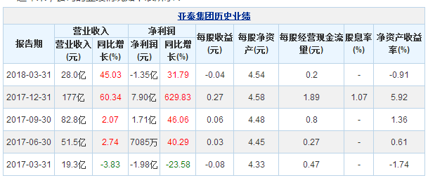 亚泰集团4月14日最新公布的2017年年报显示,其营业收入177亿元,同比增长60.34%;归属于上市公司股东的净利润7.90亿元,同比增长629.83%。