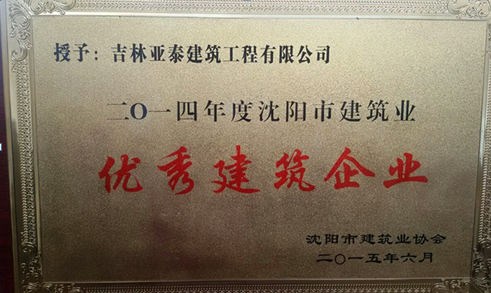 吉林亚泰建筑工程有限公司荣获“二零一四年度沈阳市建筑业优秀建筑企业”奖项。