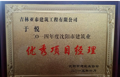沈阳亚泰城项目二期12#、13#项目经理于悦荣获“优秀项目经理”奖项。