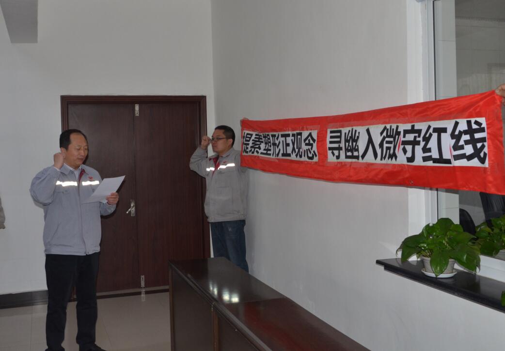 宣誓完成后,所有宣誓人逐个在警示条幅上签字,谨记“提素塑形正观念,寻幽入微守红线”。