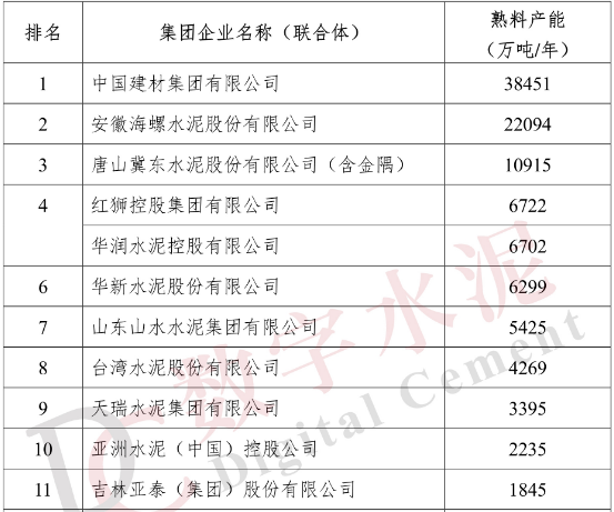 会上还公布了全国水泥熟料产能50强集团企业名单,吉林亚泰(集团)股份有限公司荣获全国水泥熟料产能11强。