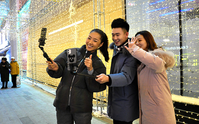首先,美女主播来到亚泰富苑首届“灯光节”灯光长廊,在绚丽夺目的百米灯光长廊下,高颜值的美女主播也忍不住打卡拍照!