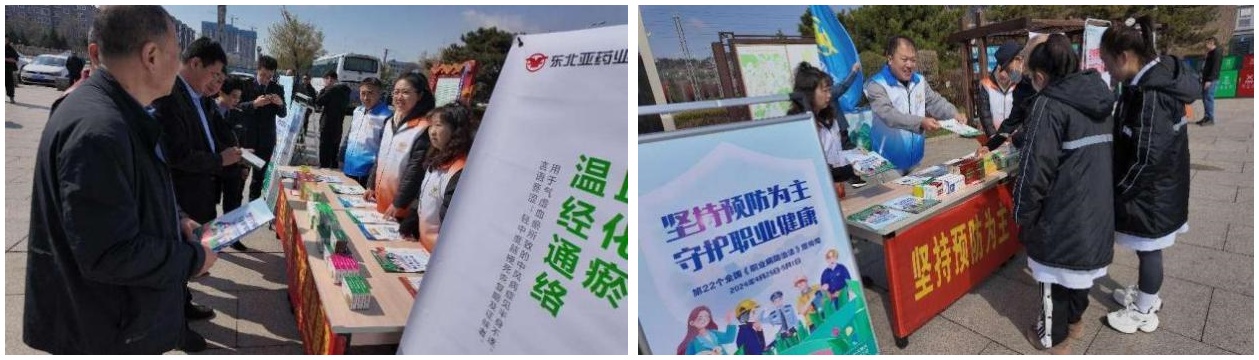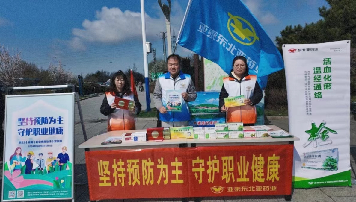 近日,为积极响应敦化市政府及卫生系统“关于开展 2024 年《职业病防治法》宣传周活动的通知”要求,亚泰东北亚药业在敦化市北山广场开展职业病防治法宣传活动。同时,借此契机,企业同步开展产品宣传推广。