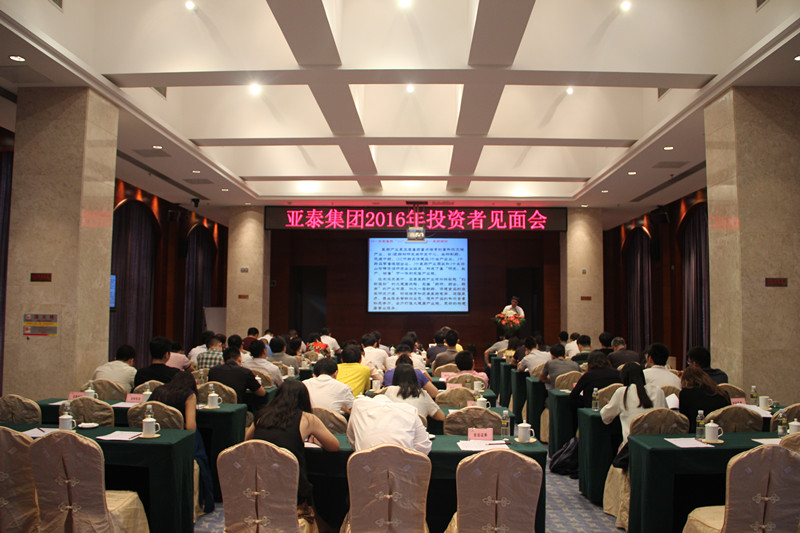 2016年4月30日上午9:30“亚泰集团2016年投资者见面会”在海南亚泰温泉酒店国际会议厅顺利召开,共有银行业、证券业代表66人参会,集团公司党委书记、常务副总裁刘树森、副总会计师彭雪松、财务资产部副总经理安宴立参加了本次会议。