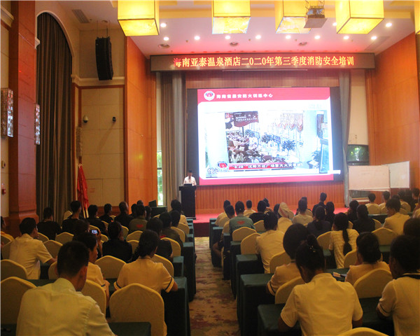 为更好的贯彻“安全第一,预防为主”的原则,提高员工消防安全意识和逃生自救能力。9月16日下午14:30时,海南亚泰温泉酒店特邀请海南安居防灾减灾宣传中心培训教官对酒店全体员工进行消防安全培训。