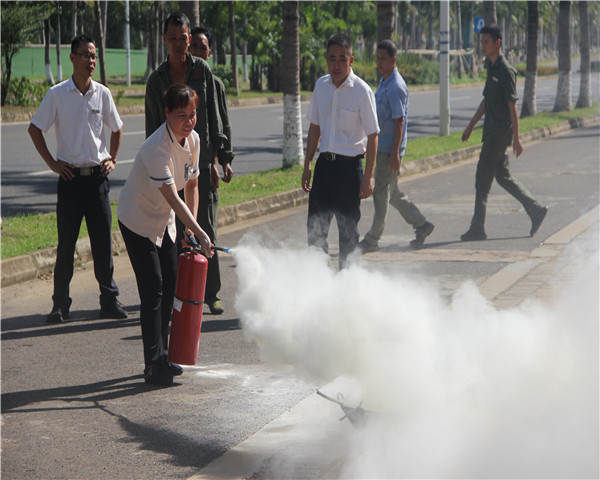 培训结束后,由物业部组织开展灭火器现场演练,要求新入职员工必须掌握灭火器使用方法,参与人员皆全神贯注进行听讲,并积极参与其中,演练现场学习氛围浓烈。