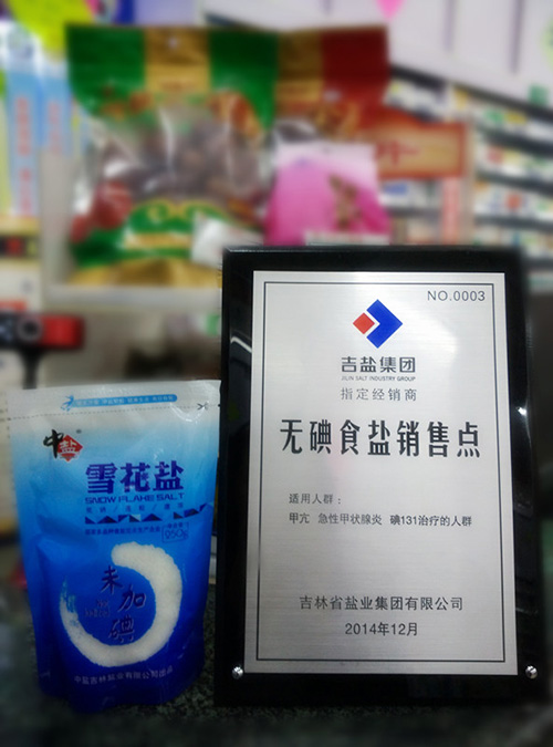 吉林省盐业集团与吉林大药房合作,吉林大药房为无碘盐销售唯一指定单位,不仅方便患有甲亢、急性甲状腺炎、碘131治疗等不适宜摄入含碘食用盐的群众购买无碘食盐,又不违反《食盐加碘消除碘缺乏危害管理条例》的规定,能够确保食用盐市场安全。新上市的“未加碘雪花盐”严格执行物价部门定价,药店实行立牌经营,标注无碘食盐的适用人群。