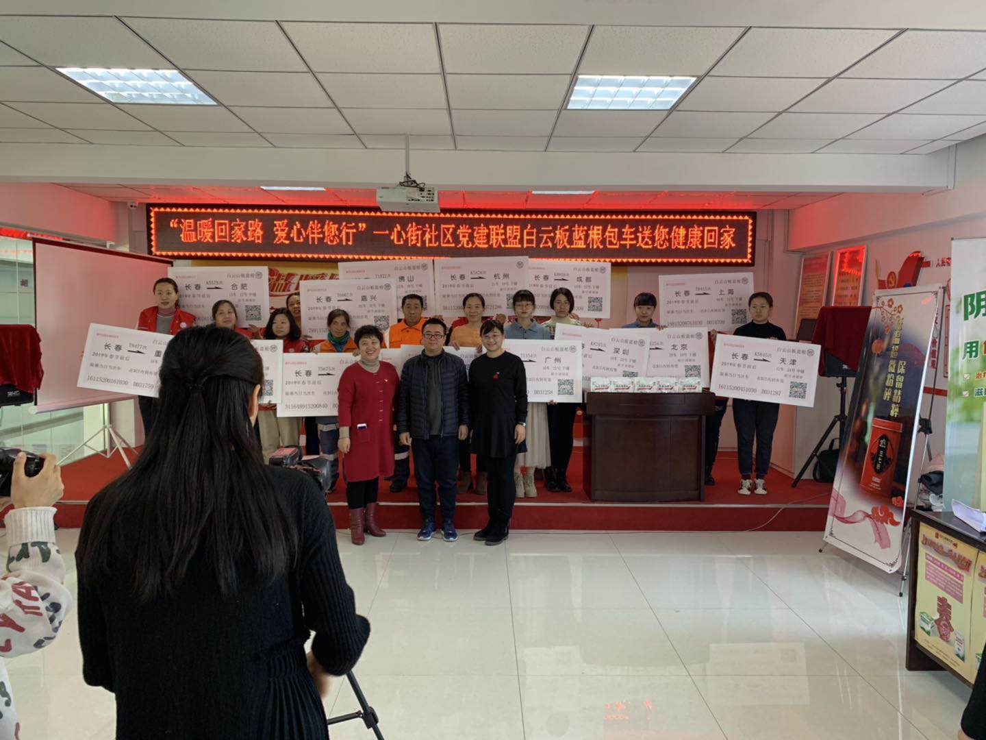 一年一度的新春佳节即将到来,我们说春节是个万家团圆的日子,而春运又让人百感交集。为了缓解异地工作人员返乡之难,2019年1月25日,吉林大药房联合广州白云山和记黄埔中药在长春市宽城区一心街社区开展“温暖回家路 爱心伴您行”春运赠票爱心公益活动,为20位春节返乡的打工一族免费赠送回乡火车票。