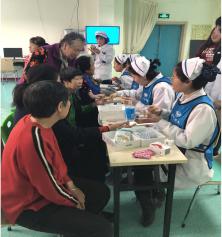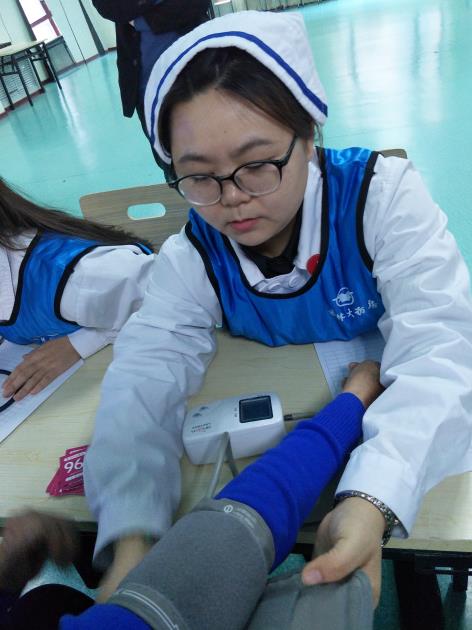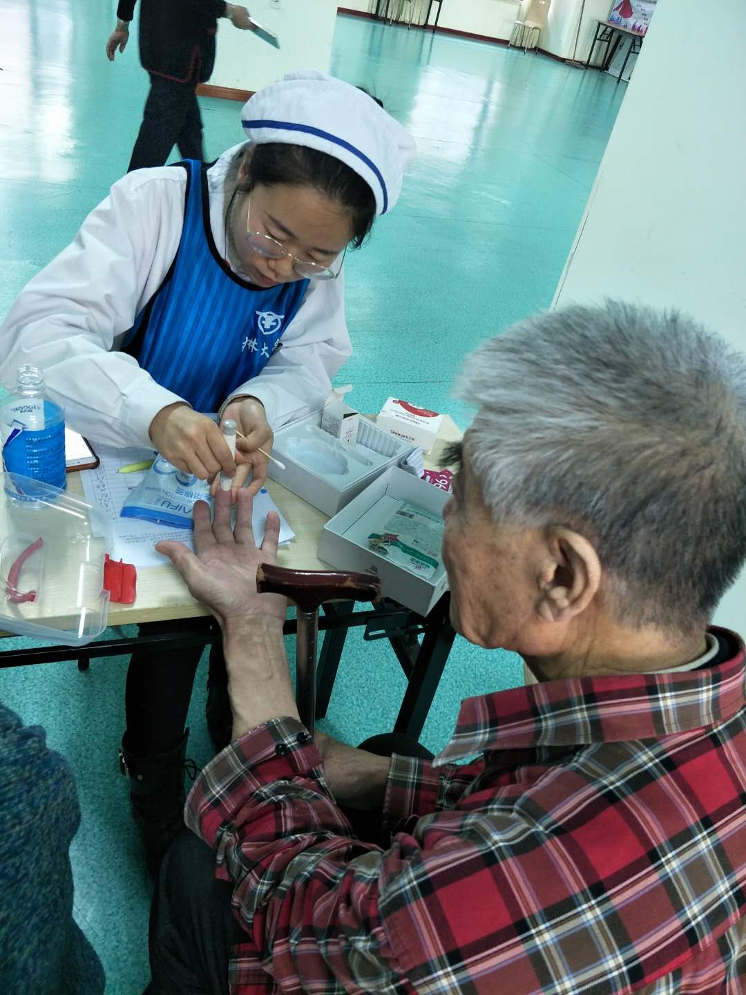 讲解环节过后,穿着蓝马甲的志愿者为老人们测量了血压、血糖,叮嘱患病多年的大爷大娘按时服药、注意饮食,并把提前准备的毽子、羽毛球、书籍、象棋等发给大家,自发的表演互动小节目,希望能给枯燥的养老生活增添些乐趣。