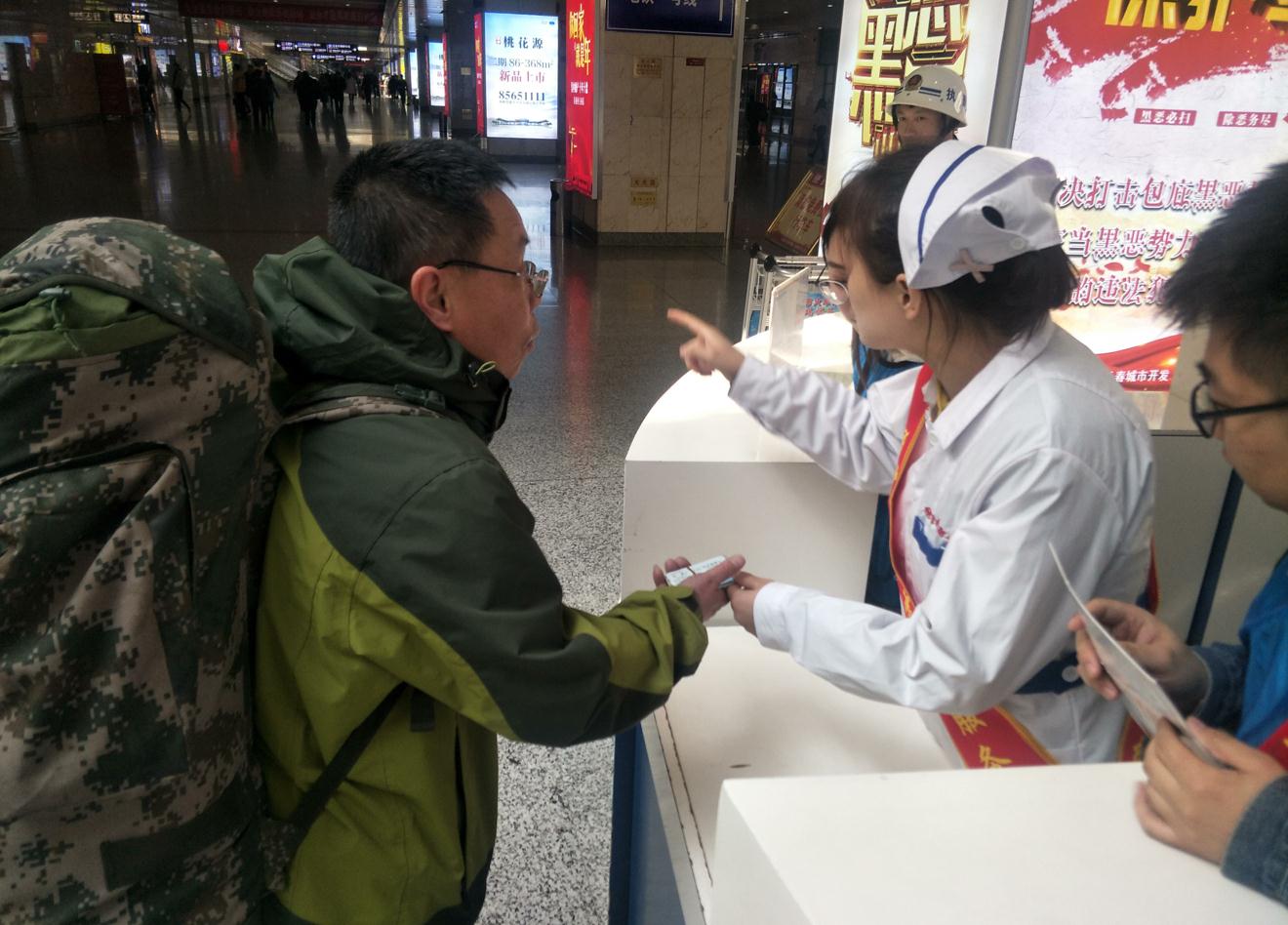 志愿者们怀着激动的心情来到车站管理局集合,接受车站负责人的简单培训后,按照执行分工,分拨前往各自的岗位。