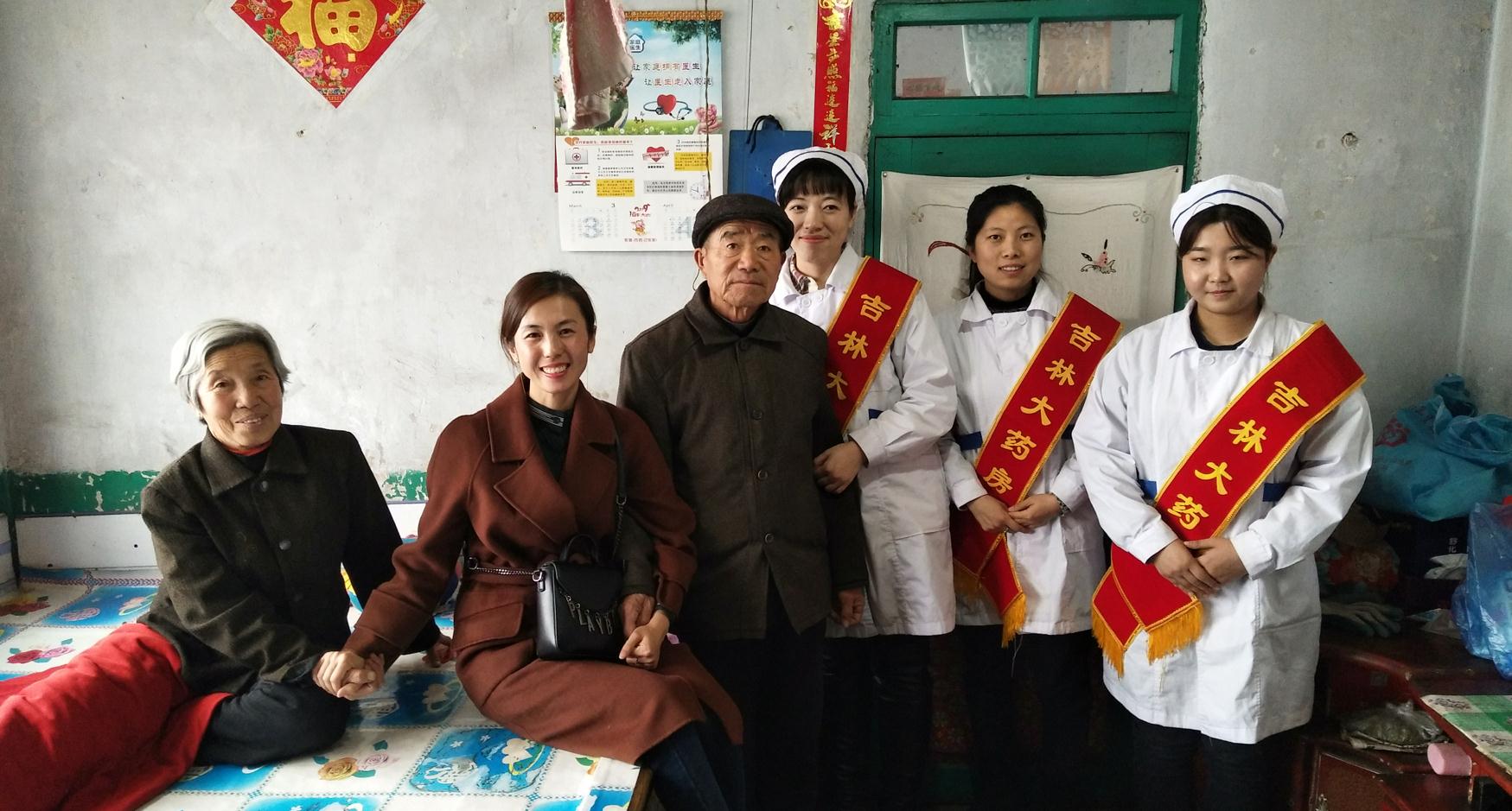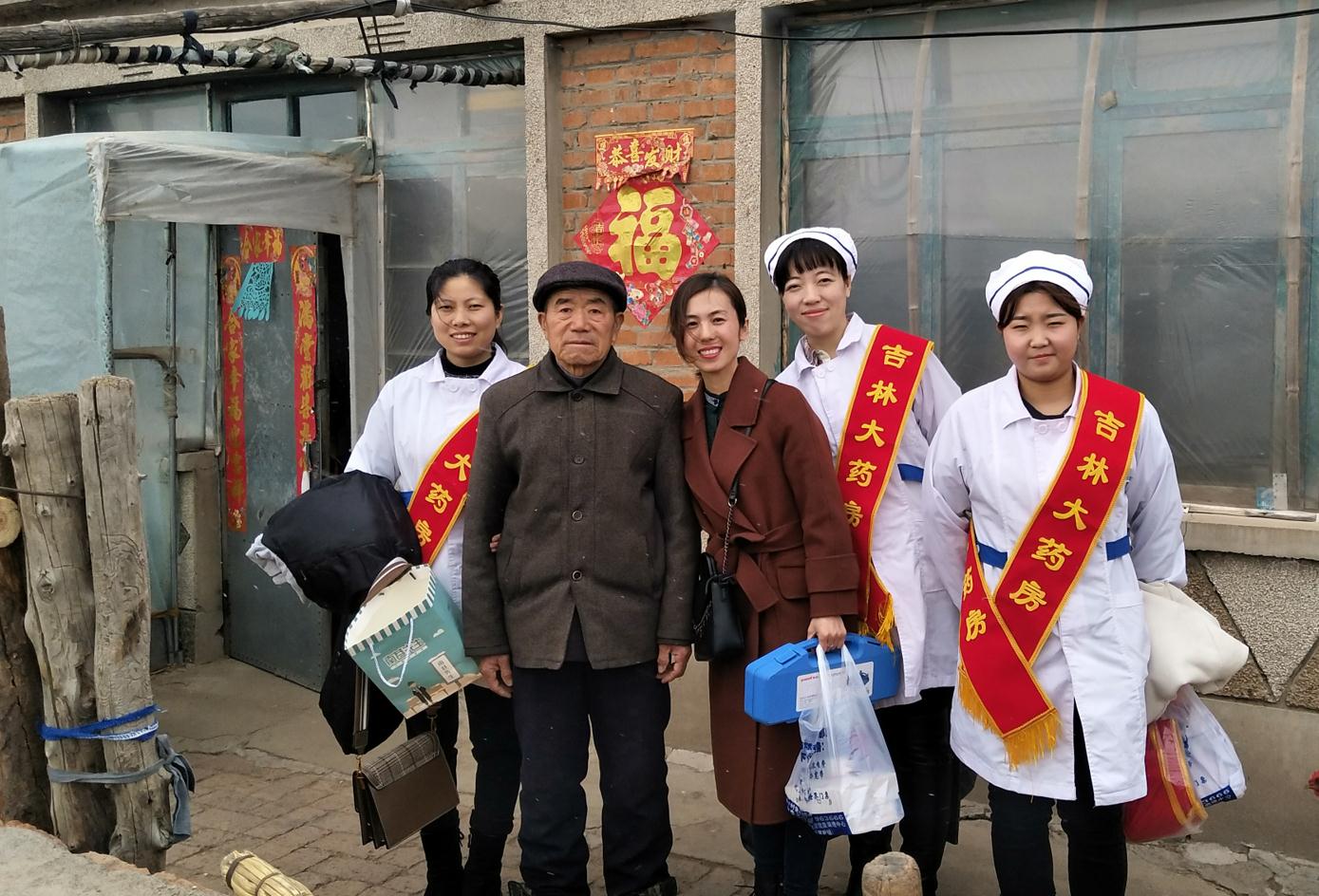 吉林大药房每年到社区、敬老院开展关爱老人公益活动近百场,3月26日,吉公益爱心蓝马甲志愿者团队四平分队首次深入偏远农村,驱车走过崎岖的山路,历时一个半小时来到二龙村80岁宋文明老人家中。