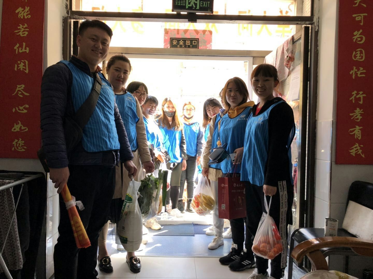 上图:63名后备店长组成的志愿者团队慰问敬老院