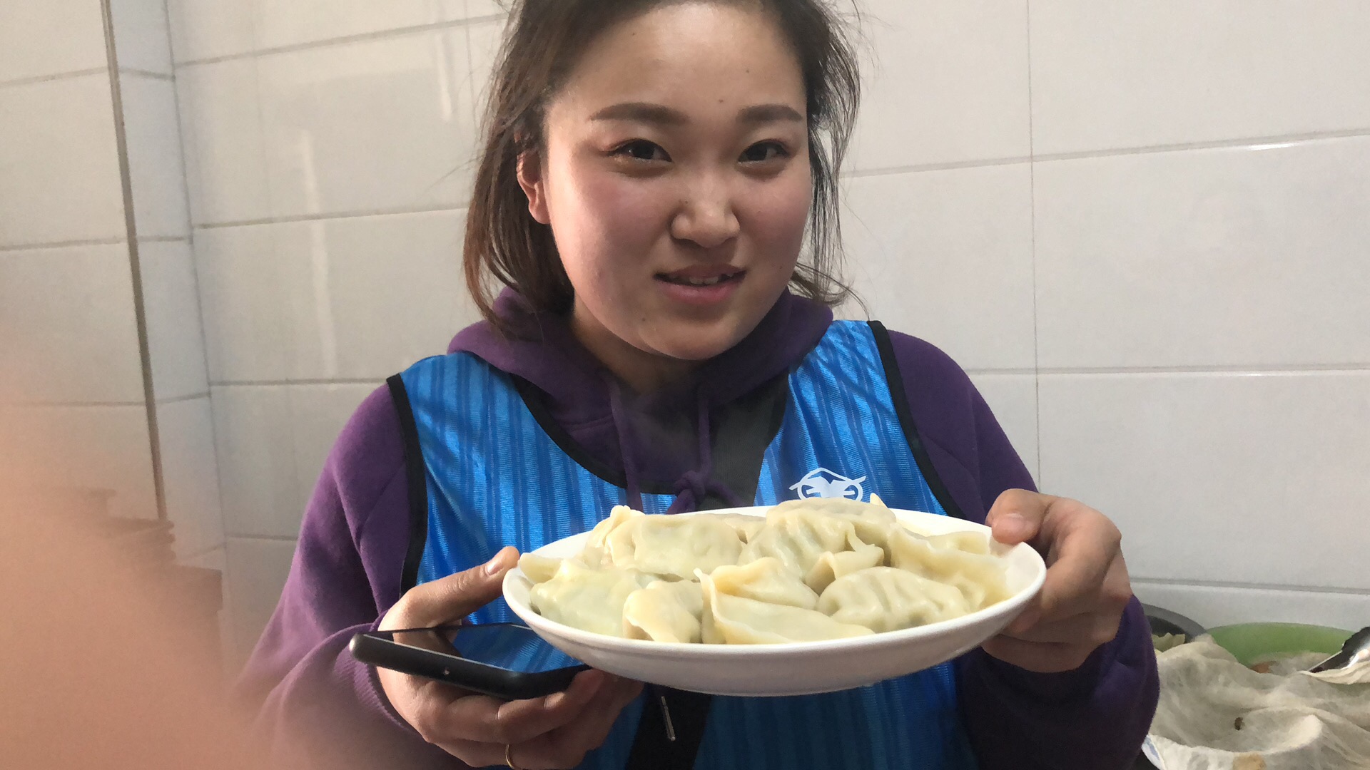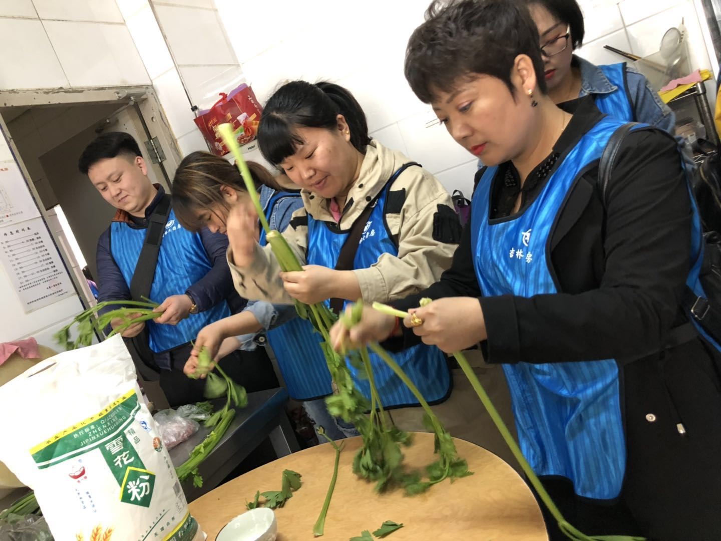 上图:后备店长为老人们包饺子
