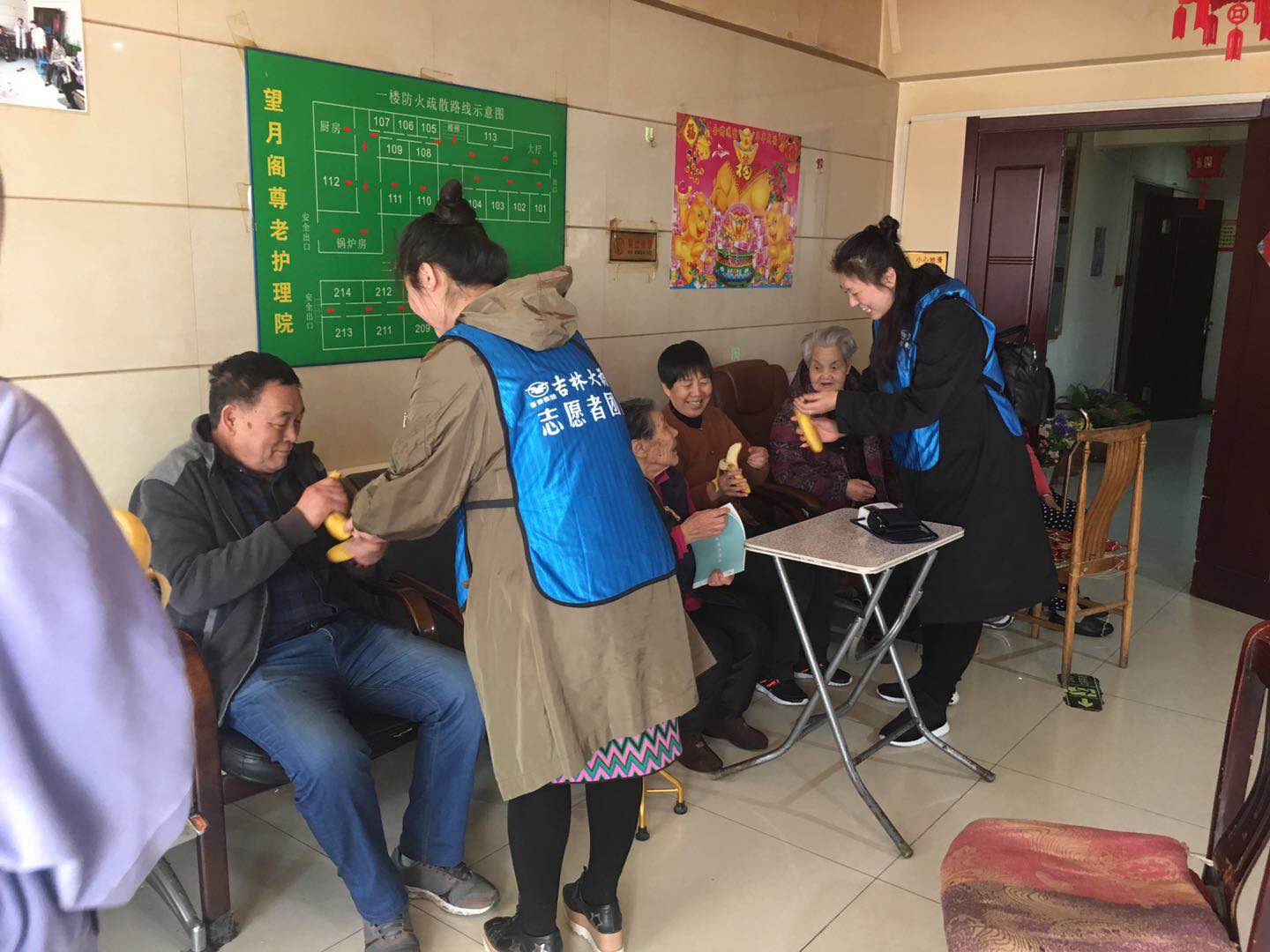 上图:后备店长与老人们合影