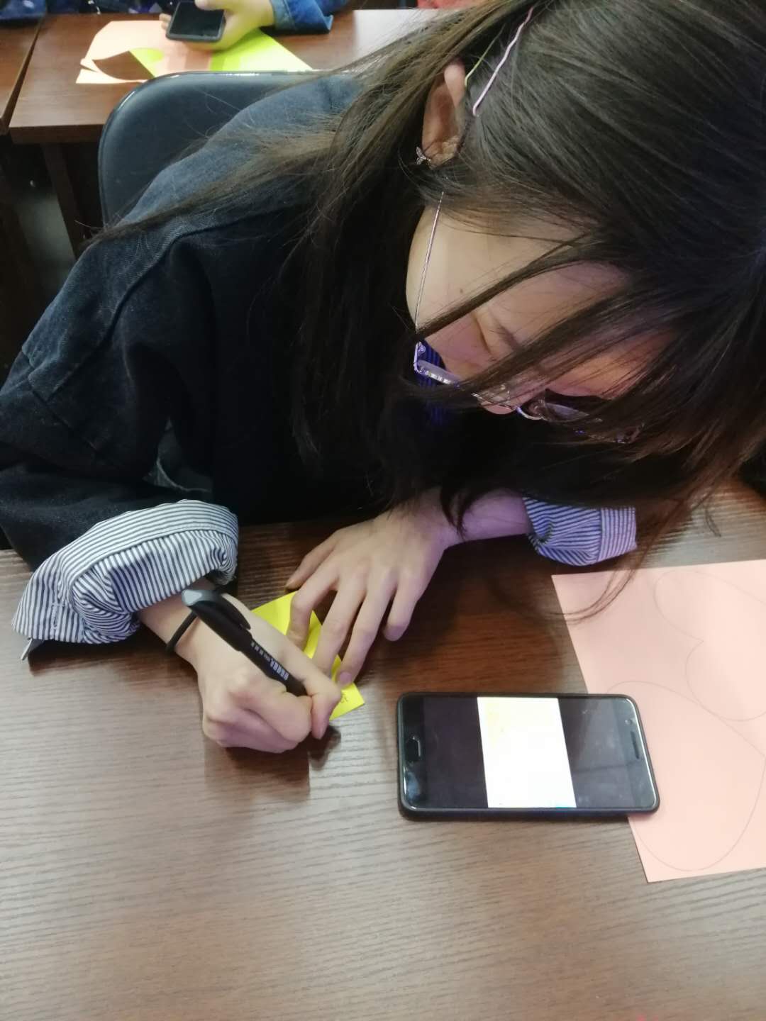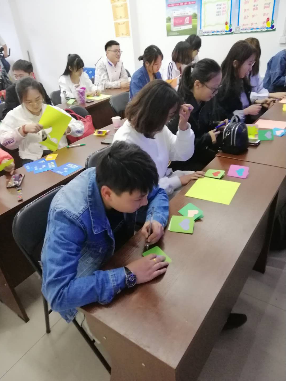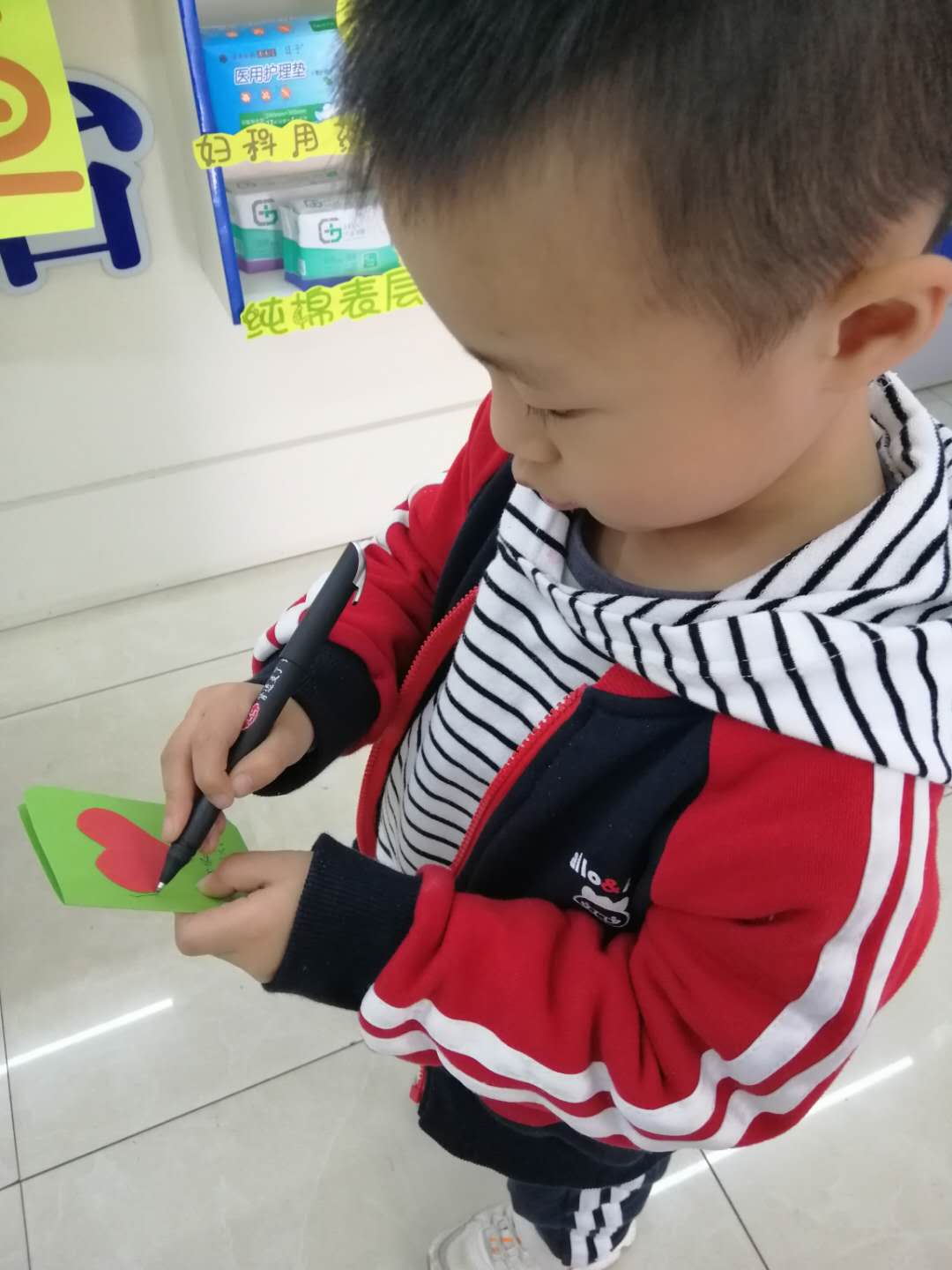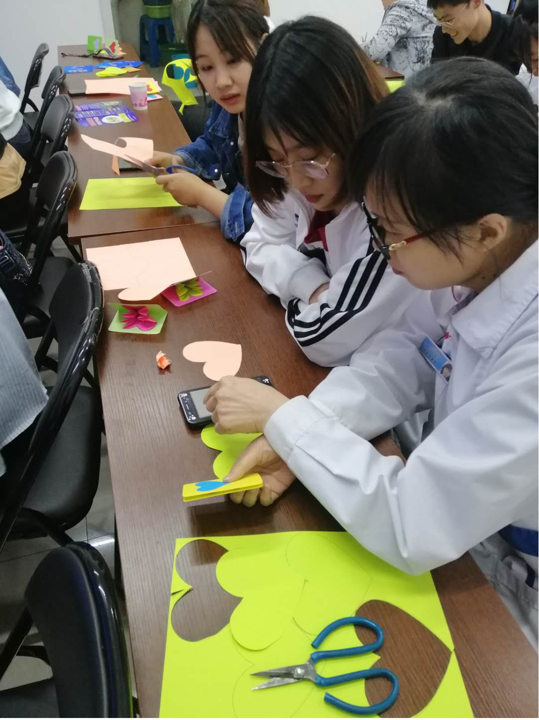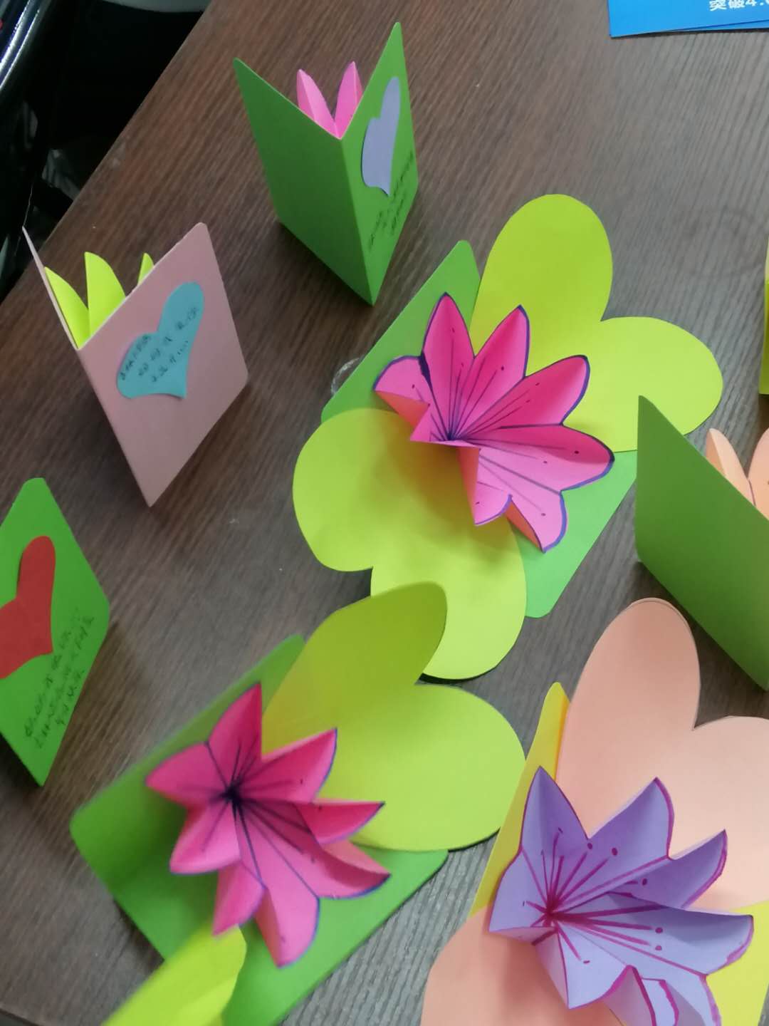上图:爱心贺卡的制作现场和成果