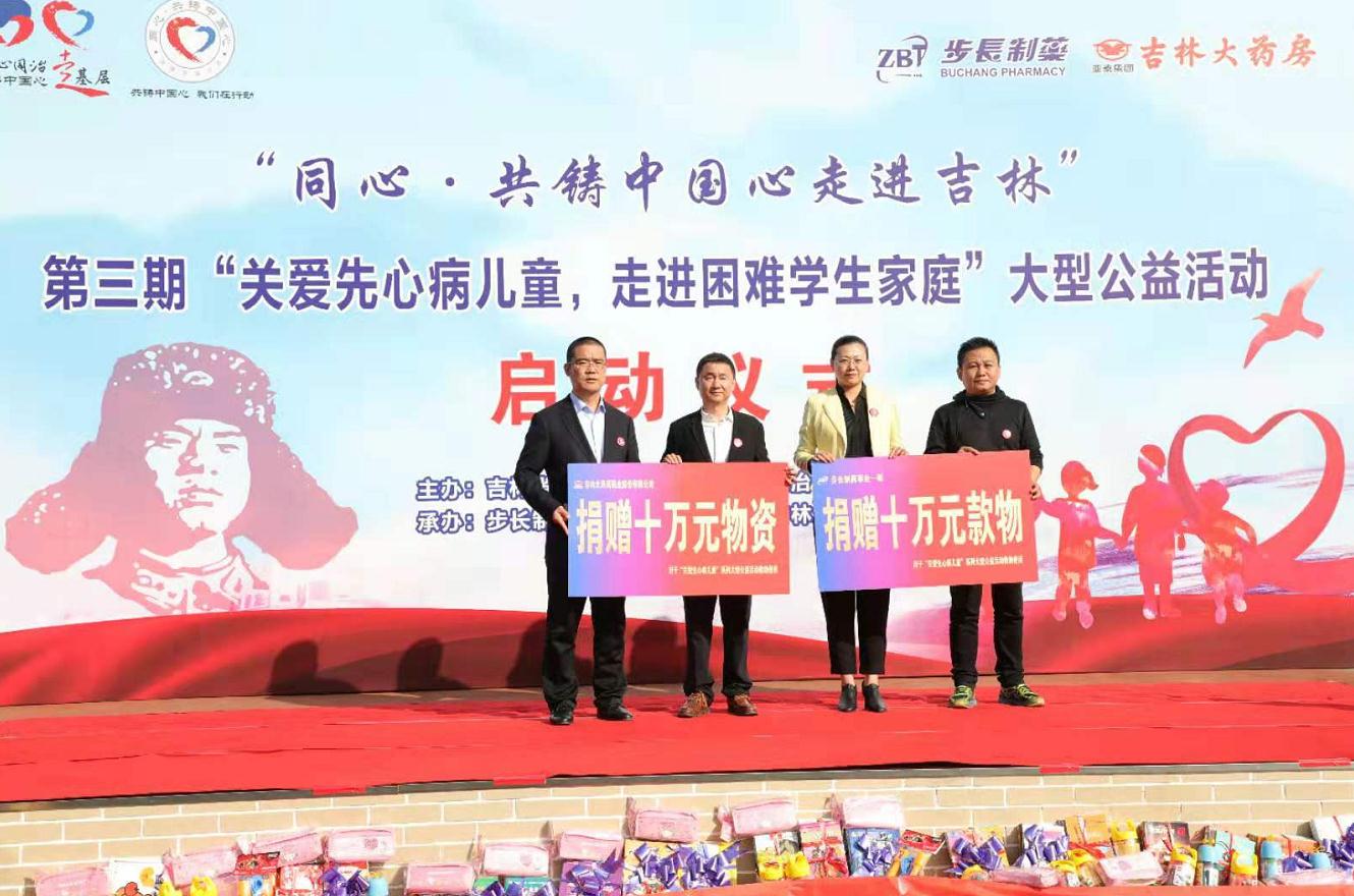 上图:吉林大药房与步长制药共同向关爱先心病儿童活动捐赠物资