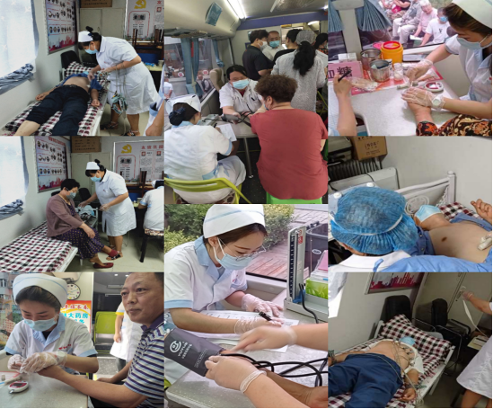 吉林大药房宽城二区志愿者分队携健康体检车走进一心街社区下属的模范自治小区——友谊花园小区,为小区的党员、“三长”(网格长、楼栋长、单元长)进行免费健康体检。