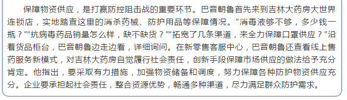 众志成城,共克时艰——巴音朝鲁深入吉林大药房指导新型冠状病毒疫情防控工作!