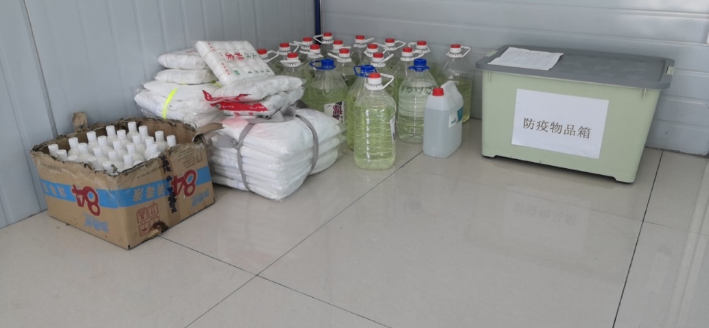 防疫物资的准备上,公司集中采购了上万个一次性医用口罩,以及大量防疫服、消毒液、分餐饭盒、独立移动卫生间等物资。保证疫情期间各项防疫工作开展。