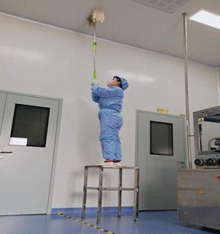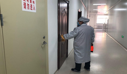 战“疫”面前,对车间设备、走廊、房间的角角落落进行全面消毒,确保生产安全顺利进行。