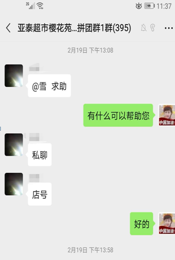 2月19日,门店微信群里出现了一条特殊的微信,一位顾客身在国外,年迈的父母住在樱花苑店附近的小区,疫情期间,小区封闭,老人出门不便无法采购,顾客心急如焚,找到樱花苑店超市的微信群,发布紧急求助信息,王店长看到后,立即致电了解顾客情况,马上与老人所在的小区物业沟通,主动提供送货服务,为顾客解决了燃眉之急。