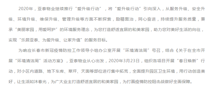 亚泰物业“爱升级行动”之环境升级 春日焕新,“新”家园,“暖”服务