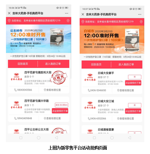 自疫情爆发以来,吉林大药房为进一步加强新冠病毒感染的肺炎疫情防控工作,减少市民因排队抢购相关的防护用品造成人员聚集,降低交叉感染风险,在其自有的新零售平台开通“线上预约,门店自提”的方式进行刚需防护用品的销售。其他家庭用药可通过平台下单,无接触配送到家!活动期间,新媒体传播渠道访问量最大达300万次,新零售平台日访问量最大可达74.8万次,平台新增注册会员14万,活动几乎场场爆抢,访问量激增,造成服务器几次响应不及时,火爆程度可见一斑。