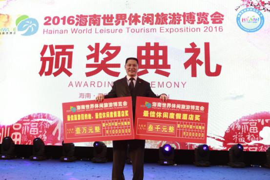 海南亚泰温泉酒店积极参与评选活动,在集团、各产业、各企业领导、同事及酒店忠实客户的大力支持下,经过为期4天的激烈票选,最终在36家单位中脱颖而出,以30023票荣获“最佳休闲度假酒店一等奖”称号,在“最佳旅游目的地、最佳休闲度假酒店”评选活动拿下总票数第一名的好成绩,较第二名高出21066票,获得现金奖励13000元。2017年1月2日下午14:00在海南国际会展中心举行了“首届海南世界休闲旅游博览颁奖仪式”,海南省旅游委员会副主任周平出席颁奖典礼并致辞。