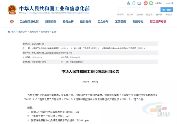 日前,工信部网站发布了2020年第40号公告,为加快推广应用高效节能技术、装备和产品,引导绿色生产和绿色消费,工信部组织编制了《国家工业节能技术装备推荐目录(2020)》《“能效之星”产品目录(2020)》《国家绿色数据中心先进适用技术产品目录(2020)》。