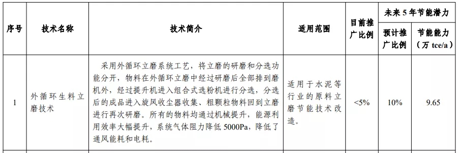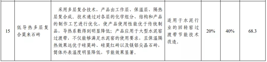 其中,外循环生料立磨技术、带中段辊破的列进式冷却机、新型水泥熟料冷却技术及装备、利用高热值危险废弃物替代水泥窑燃料综合技术、低导热多层复合莫来石砖均被列入国家工业节能技术装备推荐目录(2020)中。