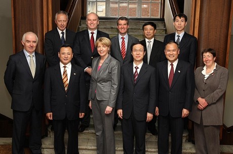亚泰集团董事长、总裁宋尚龙,副董事长、副总裁徐德复日前随同长春经贸代表团到爱尔兰进行商务访问,爱尔兰副总理兼企业贸易和就业部部长玛丽•库格兰女士(前左三)会见了市委书记高广滨(前左四)、亚泰集团董事长、总裁宋尚龙(前左二)等一行 。